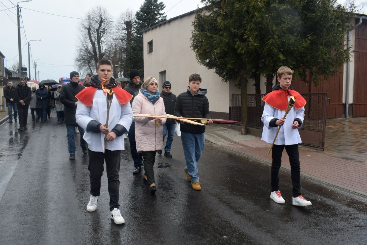 W piątkowe popołudnie przed Niedzielą Palmową po raz kolejny wyruszyła Droga Krzyżowa ulicami Lasek. W tym roku to nabożeństwo rozpoczęło się Mszą Św. w koścółku drewnianym. Po Mszy św. wyruszyliśmy z krzyżem (troche w deszczowej aurze) ulicami Kościelną, Główną i Kępińską do kościoła murowanego, w którym zakończyliśmy nasze modlitwy. Krzyż niosły poszczególne grupy wiernych z naszej Parafii, rozważania prowadził Ks. Proboszcz, a nasza Straż zadbała o bezpieczeństwo na trasie przejścia. Uczesnikom i zaangażowanym w jakikolwiek sposób w przeżycie tego Nabożeństwa DZIĘKUJEMY.
