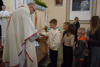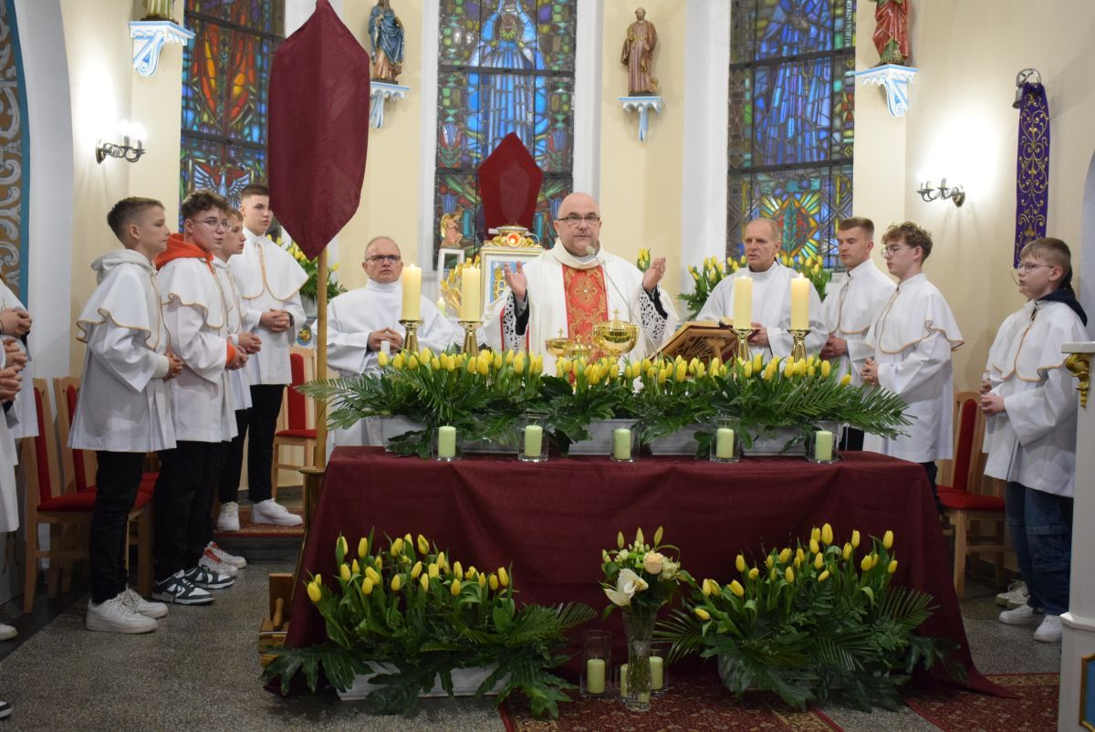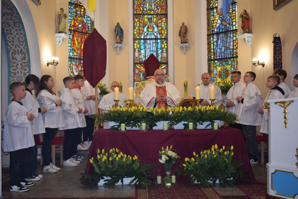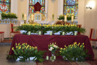W Wielki Czwartek o godz. 19.00 rozpoczęliśmy przeżywanie Triduum Paschalnego Mszą świętą Wieczerzy Pańskiej. W tej Eucharystii modliliśmy się za zmarłych Kapłanów posługujących w naszej Parafii, za Ks. Rafała Czmyra - prosząc dla niego o wszelkie potrzebne łaski, za wszystkich Kapłanów, którzy stanęli na drodze naszego życia. Dziękowaliśmy również za dar Eucharystii przypominając szczególnie dzieciom przygotowującym się do I Komunii o wielkości tego Sakrmanetu. Przed przenisieniem Pana Jezusa do Ciemnicy zostały poświęcone i wręczone książeczki do nabożenśtwa dzieciom komunijnym. Po zakończeniu całej Liturgii przedstawiciele grup parafialnych złożyły Ks. Proboszczowi życzenia z okazji Dnia Kapłańskiego. Adoracja Pana Jezusa w Ciemnicy prowadzona przez Apostolstwo Margaretek zakończyła czas modliwy wielkoczwartkowej.